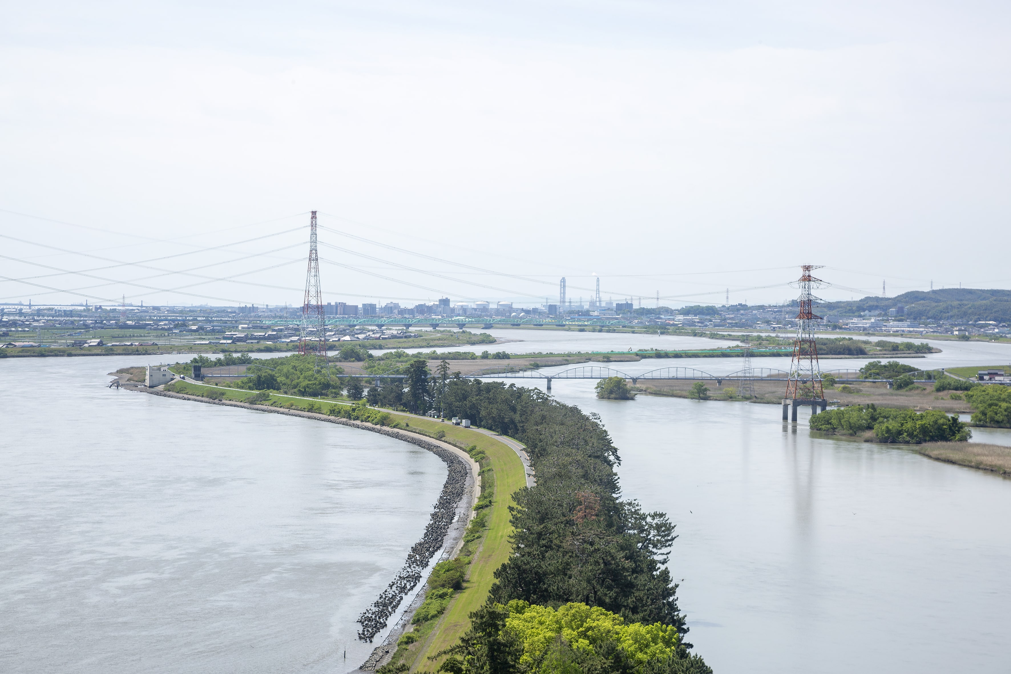 The Kiso three rivers, formed by the confluence of the Kiso, Nagara and Ibi rivers in the Kiso delta, posed significant challenges to the surrounding region — particularly the city of Nagoya. For centuries, the area suffered from frequent flooding due to the complex river system, where the rivers flowed together and then separated again, often exacerbating flood risks. Efforts to control the waters date back to the Edo period, when various measures like the construction of dikes and embankments were proposed. However, it was only during the Meiji era (1868-1912) that substantial improvements began to take shape.